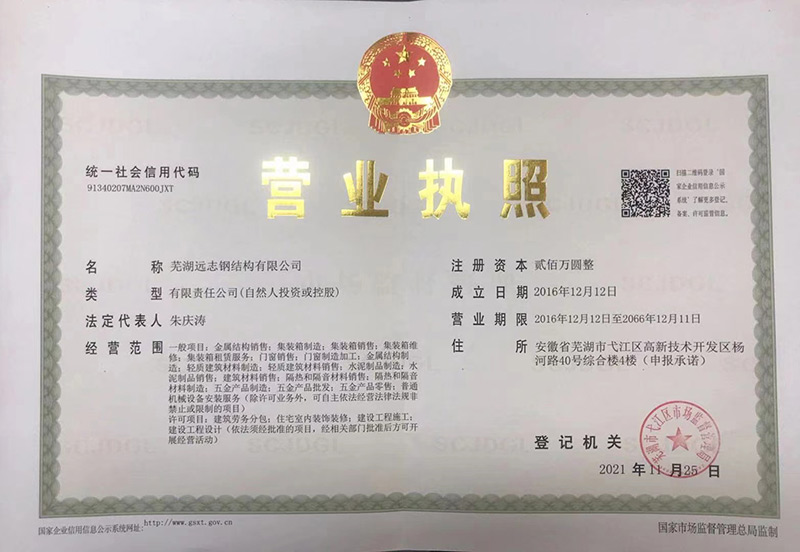 - 蕪湖遠(yuǎn)志鋼結(jié)構(gòu)有限公司主營(yíng)活動(dòng)板房、集裝箱房等已有數(shù)十年歷史,專(zhuān)業(yè)致力于活動(dòng)板房的銷(xiāo)售和安裝,是廣大建筑行業(yè)忠誠(chéng)的合作伙伴,至今已和上百家企事業(yè)單位達(dá)成合作。 我們本著以質(zhì)量求生存,服務(wù)求發(fā)展的態(tài)度。和廣大客戶建立了長(zhǎng)期良好合作關(guān)系。本產(chǎn)品質(zhì)量過(guò)硬,品質(zhì)優(yōu)良,服務(wù)到位。歡迎新老客戶致電咨詢選購(gòu)。